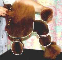 leaving more or less fur in front and behind the dog. Trim the top line on the croup